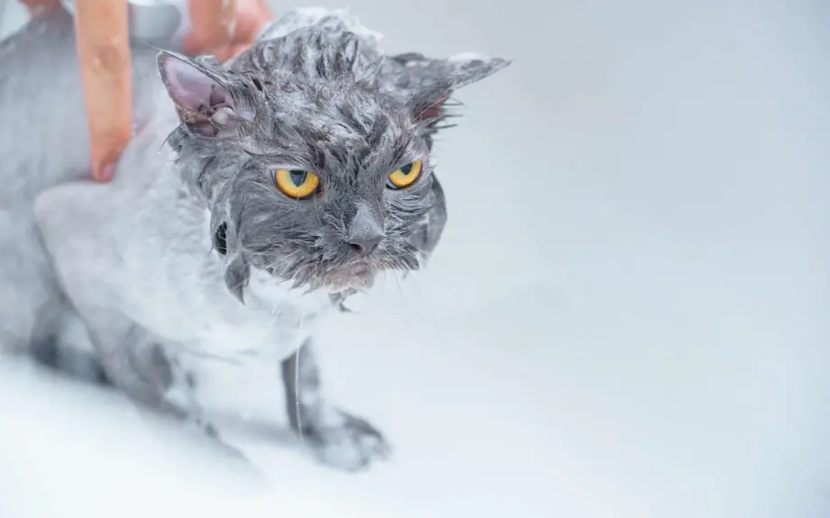 Astuce : Quand vous lavez votre chat dans la baignoire, posez une serviette ou un tapis antidérapant au fond pour éviter les glissades ! Il est possible de diffuser des huiles essentielles tranquillisantes avant le bain.