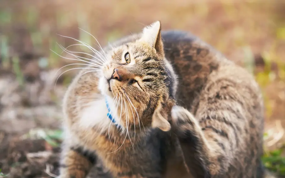 - Il se gratte l’oreille avec sa patte ou sur des objets ;