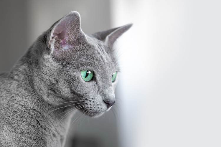 Le Bleu Russe est une race de chat originaire de Russie, caractérisée par son pelage court, épais et d'un bleu argenté distinctif. Les mâles pèsent généralement entre 4 et 6 kg, tandis que les femelles pèsent entre 3 et 4,5 kg. Leur taille au garrot est d'environ 25 à 30 cm. Ces chats sont réputés pour leur tempérament calme, leur intelligence et leur attachement à leurs propriétaires.