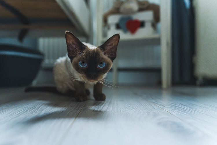 Le Devon Rex est une race de chat caractérisée par son pelage court et bouclé et ses grandes oreilles. Les mâles pèsent généralement entre 2,3 et 4,5 kg, tandis que les femelles pèsent entre 2,0 et 3,6 kg. Leur taille au garrot est d'environ 25 à 30 cm. Originaires du Royaume-Uni, ces chats sont actifs, intelligents et affectueux. Leur pelage doux et frisé nécessite peu d'entretien. Les Devon Rex sont connus pour leur personnalité sociables, ils s'entendent bien avec les enfants et les autres animaux de compagnie, faisant d'eux d'excellents compagnons.