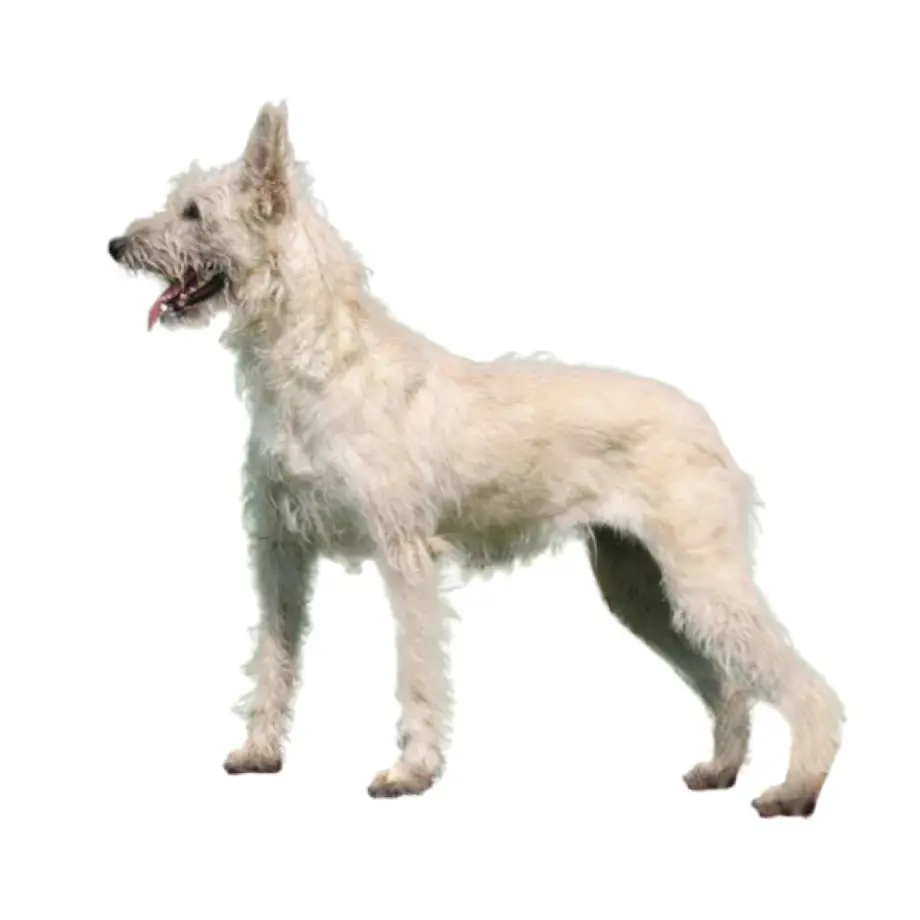 Le poil est mi-long (environ 6 cm), sec, et ébouriffé. La robe peut être de toutes les couleurs, sauf le blanc.